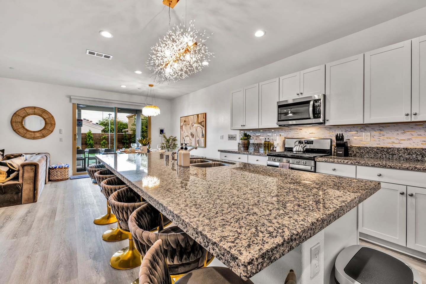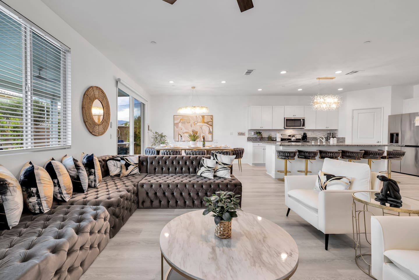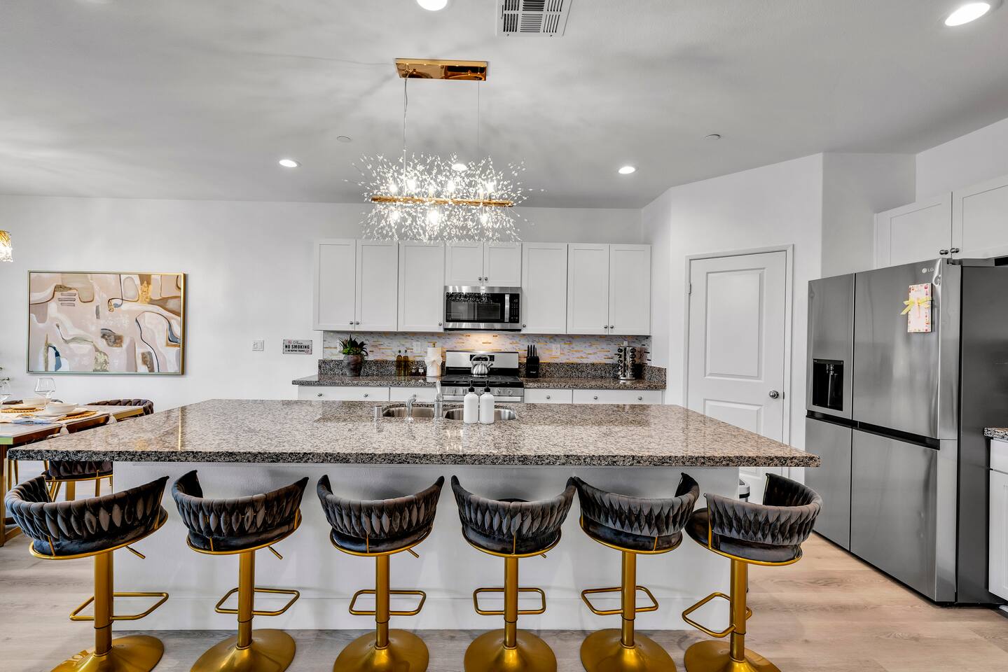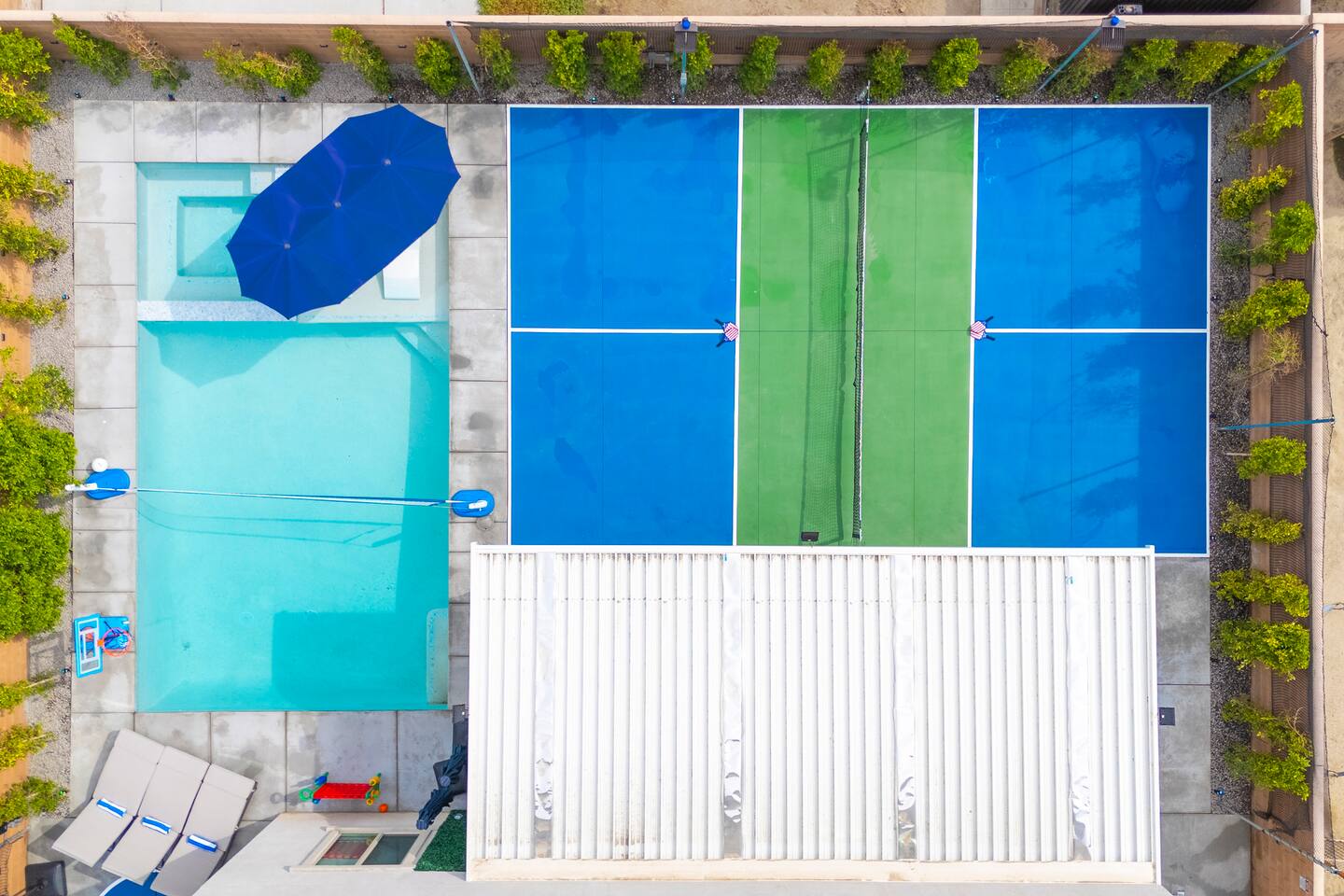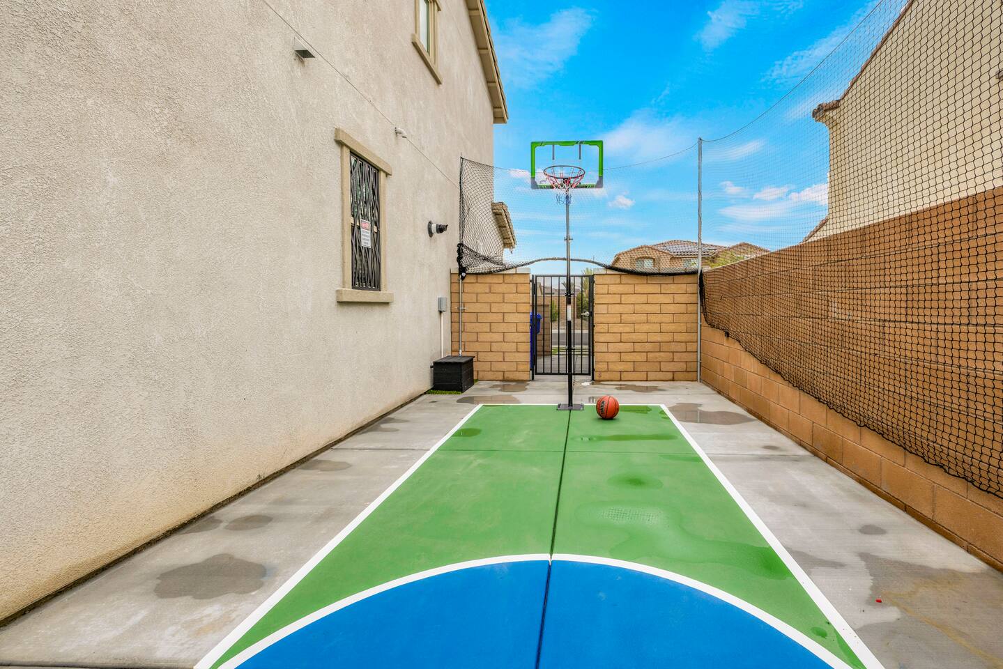 - 8 bedrooms, sleeps up to 23 people - Resort-style pool & spa - Covered patio with outdoor dining - Stainless steel BBQ - Loungers perfect for enjoying the sun - High-efficiency central AC and central heating - Washer/ dryer - Fast wifi and smart locks for easy check-in + access - Smart tablet to control the pool/ spa - Smart TVs and speakers for indoor music - Comfortable beds - Complimentary coffee, tea, sugar and cooking supplies - Parking available in the driveway and on the street. Please note: the garage has been turned into a game room and is not available for parking. LIVING ROOM, KITCHEN, AND DINING ROOM Enjoy an open concept space with beautiful views and lots of counter space and a large dining table to enjoy your meals at. The living room is equipped with a spacious and comfortable couch, smart tv, speakers, and easy access to the backyard. The kitchen has a standard ground coffee maker available for use during your stay. There is also a desk in this space you’re welcome to use for working from home. OUTDOOR SPACE The resort style pool and spa is brand new. The covered patio includes an outdoor dining table and fire pit. The backyard also includes a BBQ, lounge chairs, pickleball court, pool basketball hoop, pool volleyball net, mini basketball court, putting green, corn hole, connect four, and ring toss. GARAGE GAME ROOM The game room includes a ping pong table, foosball table and air hockey table. DOWNSTAIRS Bedroom 1 - 2 full beds Bedroom 2 - 1 king bed + 1 rollaway bed Bathroom 1 - shower with tub UPSTAIRS Bedroom 3 - 3 full sized bunk beds (6 beds total) Bathroom 2 - shower with tub Bedroom 4 - 2 twin beds Bedroom 5 - 2 full beds Bedroom 6 - 1 king bed Bathroom 3 - shower + tub Bedroom 7 (Primary) - 1 king bed Bathroom 4 - ensuite in primary room including shower and XL tub Bedroom 8 - 1 twin OCCUPANCY 23 guests maximum PETS Our general rule is that we do not allow dogs or pets but can make an exception for small dogs for an additional $100 pet fee per pet. POOL & SPA Pool heating - $150 per day Spa heating - complimentary Pool is 6-8 ft deep in the deep end No glassware by the pool. We have provided ample outdoor drinkware, please use it! No diving, no lifeguard on duty; guests assume their own risk PARKING Free parking available in the driveway and on the street. No indoor garage parking allowed due to the gameroom. The garage has a 240 V outlet to charge electric vehicles. You must bring your own charger. SECURITY CAMERAS For the safety of our property, we have outdoor security cameras in the front and side yard of the property. These are live recordings and we do monitor. Please message us if you have any additional questions. HOUSE RULES - No parties; violations will be notified to property manager and a $200 clean up fee will be charged - No parking in the garage, this is a dedicated game room and any furniture should not be moved. - Quiet hours start at 9:00pm. - 23 guests maximum; additional guests by approval will result in a fee - No glassware by the pool. We have provided ample outdoor drinkware, please use it! - Generally we do not allow pets but can accommodate small dogs for an additional $150 fee per pet. -Pool heating fee:$150 per day.Please request at least 24 hours in advance. Other details to note This house is privately owned and managed; the owners assume no liability for any accidents, injuries or illness that occur while on the premises or its facilities. The homeowners are not responsible for the loss of personal belongings or valuables of the guest. It is agreed that all guests are expressly assuming the risk of any harm arising from their use of the premises. Guests should be aware that the pool, spa, and surrounding patios can be dangerous.
