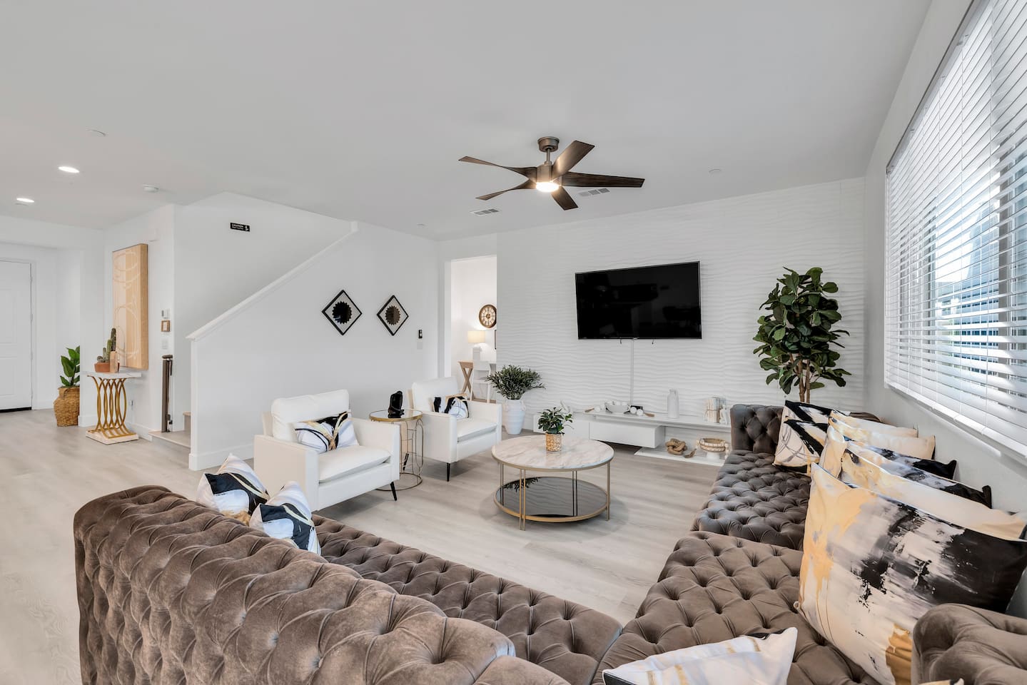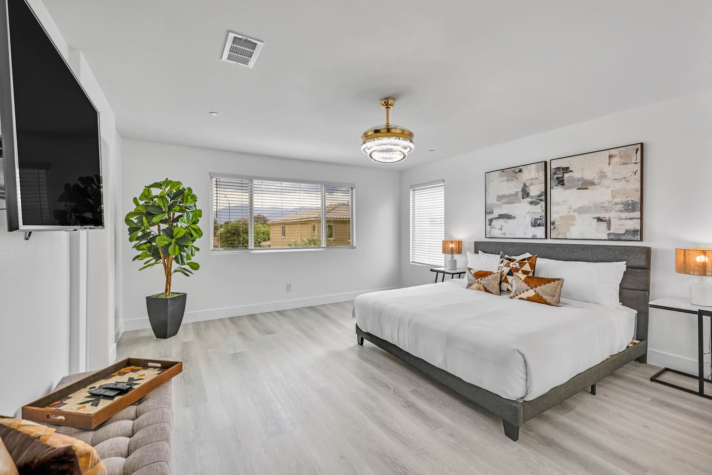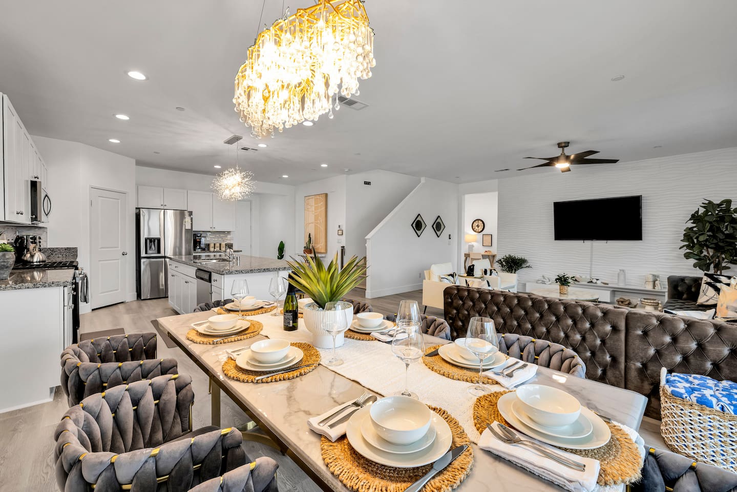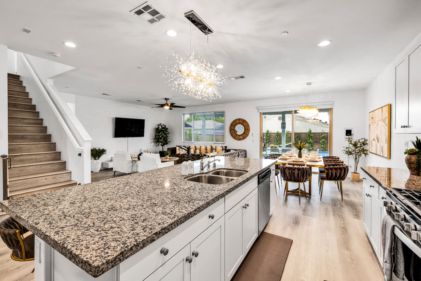 - 8 bedrooms, sleeps up to 23 people - Resort-style pool & spa - Covered patio with outdoor dining - Stainless steel BBQ - Loungers perfect for enjoying the sun - High-efficiency central AC and central heating - Washer/ dryer - Fast wifi and smart locks for easy check-in + access - Smart tablet to control the pool/ spa - Smart TVs and speakers for indoor music - Comfortable beds - Complimentary coffee, tea, sugar and cooking supplies - Parking available in the driveway and on the street. Please note: the garage has been turned into a game room and is not available for parking. LIVING ROOM, KITCHEN, AND DINING ROOM Enjoy an open concept space with beautiful views and lots of counter space and a large dining table to enjoy your meals at. The living room is equipped with a spacious and comfortable couch, smart tv, speakers, and easy access to the backyard. The kitchen has a standard ground coffee maker available for use during your stay. There is also a desk in this space you’re welcome to use for working from home. OUTDOOR SPACE The resort style pool and spa is brand new. The covered patio includes an outdoor dining table and fire pit. The backyard also includes a BBQ, lounge chairs, pickleball court, pool basketball hoop, pool volleyball net, mini basketball court, putting green, corn hole, connect four, and ring toss. GARAGE GAME ROOM The game room includes a ping pong table, foosball table and air hockey table. DOWNSTAIRS Bedroom 1 - 2 full beds Bedroom 2 - 1 king bed + 1 rollaway bed Bathroom 1 - shower with tub UPSTAIRS Bedroom 3 - 3 full sized bunk beds (6 beds total) Bathroom 2 - shower with tub Bedroom 4 - 2 twin beds Bedroom 5 - 2 full beds Bedroom 6 - 1 king bed Bathroom 3 - shower + tub Bedroom 7 (Primary) - 1 king bed Bathroom 4 - ensuite in primary room including shower and XL tub Bedroom 8 - 1 twin OCCUPANCY 23 guests maximum PETS Our general rule is that we do not allow dogs or pets but can make an exception for small dogs for an additional $100 pet fee per pet. POOL & SPA Pool heating - $150 per day Spa heating - complimentary Pool is 6-8 ft deep in the deep end No glassware by the pool. We have provided ample outdoor drinkware, please use it! No diving, no lifeguard on duty; guests assume their own risk PARKING Free parking available in the driveway and on the street. No indoor garage parking allowed due to the gameroom. The garage has a 240 V outlet to charge electric vehicles. You must bring your own charger. SECURITY CAMERAS For the safety of our property, we have outdoor security cameras in the front and side yard of the property. These are live recordings and we do monitor. Please message us if you have any additional questions. HOUSE RULES - No parties; violations will be notified to property manager and a $200 clean up fee will be charged - No parking in the garage, this is a dedicated game room and any furniture should not be moved. - Quiet hours start at 9:00pm. - 23 guests maximum; additional guests by approval will result in a fee - No glassware by the pool. We have provided ample outdoor drinkware, please use it! - Generally we do not allow pets but can accommodate small dogs for an additional $150 fee per pet. -Pool heating fee:$150 per day.Please request at least 24 hours in advance. Other details to note This house is privately owned and managed; the owners assume no liability for any accidents, injuries or illness that occur while on the premises or its facilities. The homeowners are not responsible for the loss of personal belongings or valuables of the guest. It is agreed that all guests are expressly assuming the risk of any harm arising from their use of the premises. Guests should be aware that the pool, spa, and surrounding patios can be dangerous.