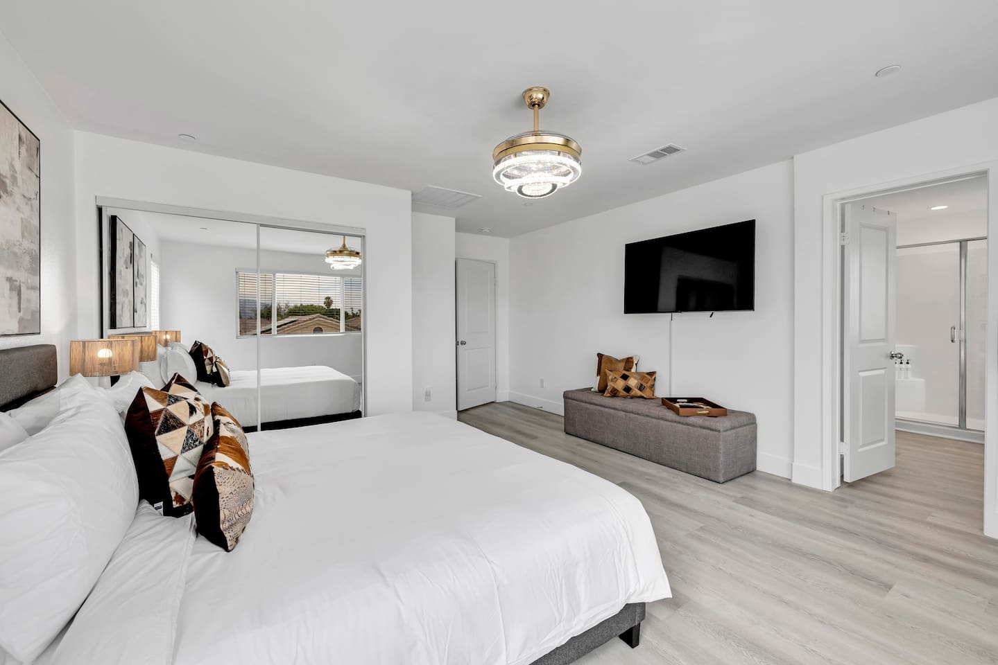 Oh La la Coachella is the perfect place to enjoy a weekend of fun with your friends and family. This spacious home sleeps up to 23 people with 8 bedrooms. The backyard is equipped with a brand new pool and spa, pickleball court, BBQ, firepit, outdoor dining, and ample games. Please note, pool heating costs $150/ day and we need at least 24 hours notice before your arrival. Spa heating is complementary during your stay.