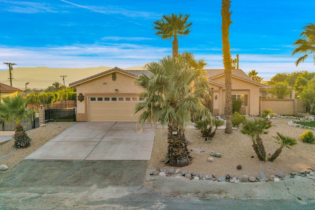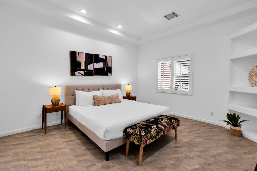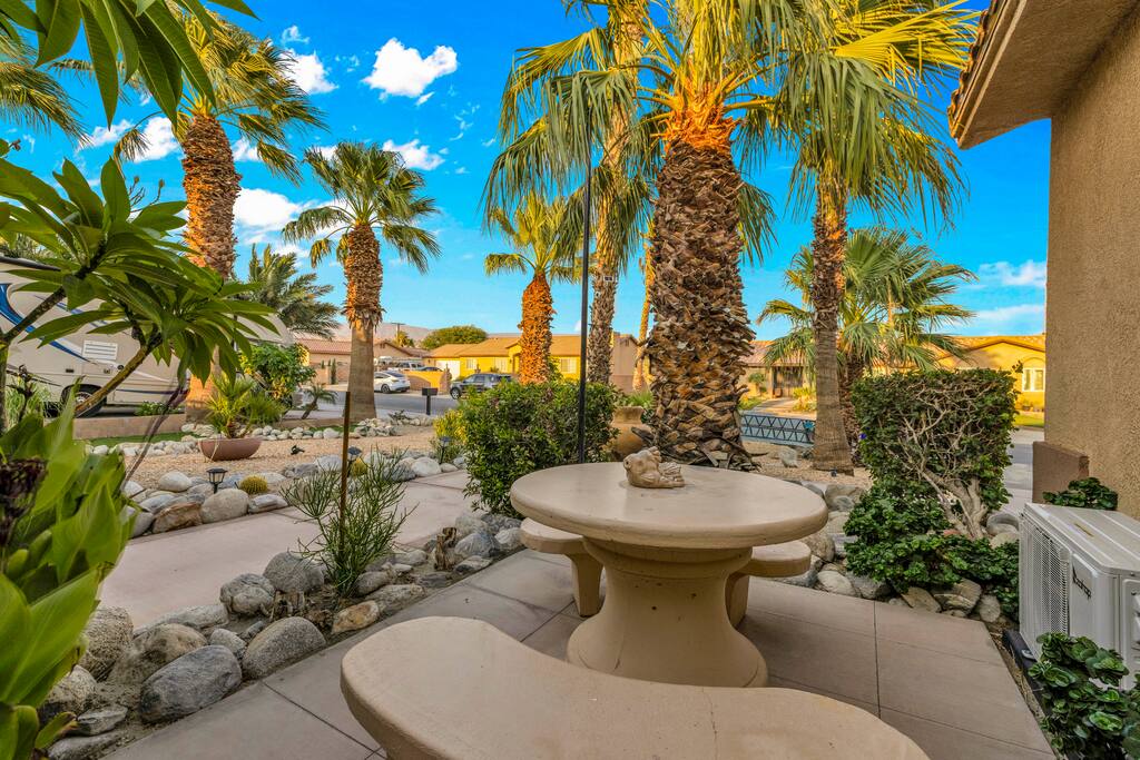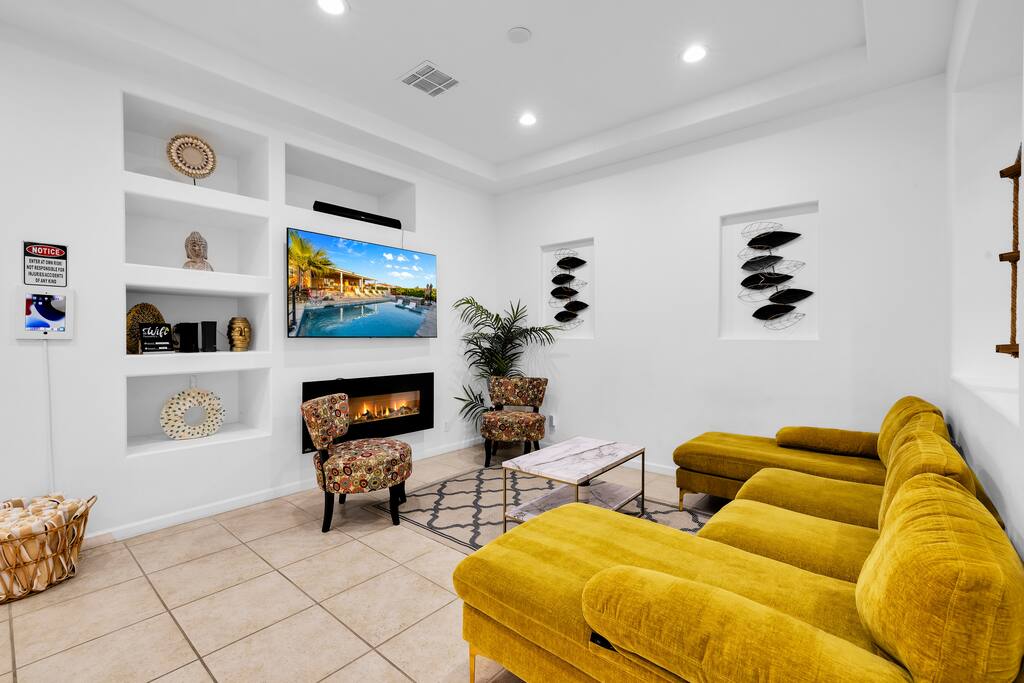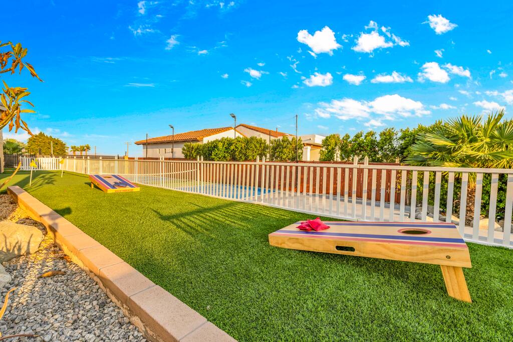 BACKYARD The new backyard includes a pool & spa, covered patio with an outdoor dining table, sofas, BBQ, hammock, firepit, basketball court, pickleball court, putting green, and other games. There are lots of activities to keep your party entertained all day and night. **PLEASE NOTE: The fee to heat the pool is $150/day. Please let us know at least 24 hours in advance of your arrival if you'd like the pool heated. Spa heating is complimentary. KITCHEN The kitchen is fully equipped with a standard ground coffee maker, tea kettle, toaster, blender, and everything you need to cook at home. Kitchen supplies included: coffee, sugar, tea, cooking oil, spices, and plenty of outdoor dinnerware. LIVING ROOM Enjoy an open-concept living room with a large comfortable couch to fit your party, a TV, and a sound bar to play your favorite music. BEDROOMS Please see details of each room below: 1 - 1 king bed, ensuite bathroom 2 - 1 king bed, ensuite bathroom, work-from-home desk 3 - 1 king bed 4 - 4 twin beds, ensuite bathroom + 2 twin folding beds BATHROOMS All three bathrooms include bath towels, hand towels, shampoo, conditioner, and body wash. Additional bath towels can be found under each bathroom sink. HOUSE RULES - No parties; violations will be notified to property manager and a $200 party clean up fee will be charged - Quiet hours start at 10:00 pm - 12 guests maximum - No glassware by the pool. We have provided ample outdoor drinkware, please use it! - We generally do not allow pets. Small dogs are ok for an additional $100 pet fee. Please reach out to hosts for approval - Turn off BBQ and Fire pit propane after each use - Lower umbrellas every day due to winds SECURITY CAMERAS For the safety of our property, we have outdoor security cameras facing the front driveway and front doorbell. These are live recordings and we do monitor. Please message us if you have any questions. This house is privately owned and managed; the owners assume no liability for any accidents, injuries or illness that occur while on the premises or its facilities. The homeowners are not responsible for the loss of personal belongings or valuables of the guest. It is agreed that all guests are expressly assuming the risk of any harm arising from their use of the premises. Guests should be aware that the pool and surrounding patios can be dangerous. Please note, while the house is cleaned regularly before and after each guest, this desert region is known for natural dust storms and strong winds from time to time. These winds may carry a lot of sand that may collect on outdoor furniture overnight. STR#: RVC-1573
