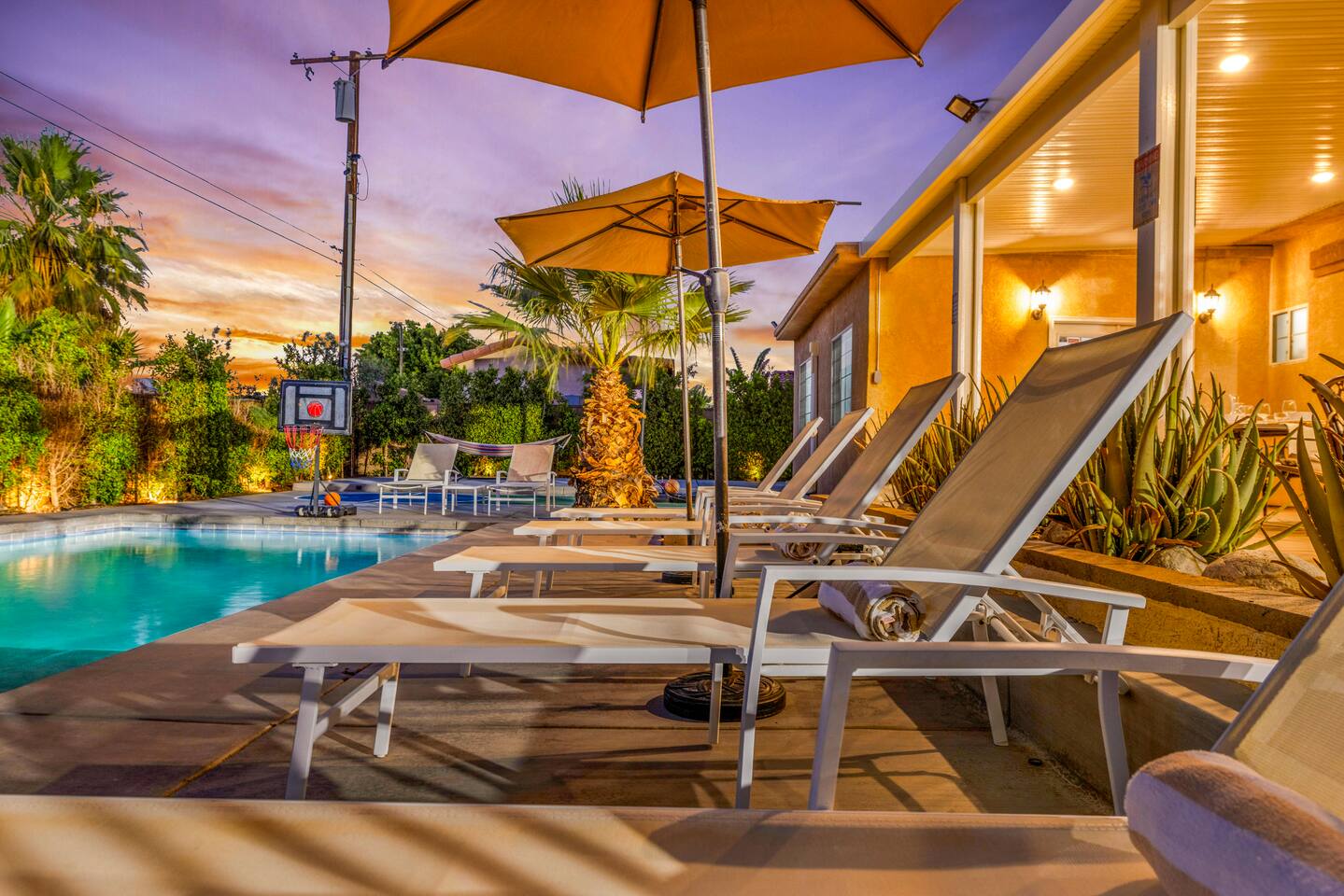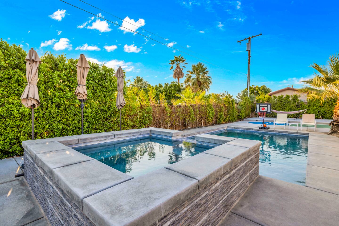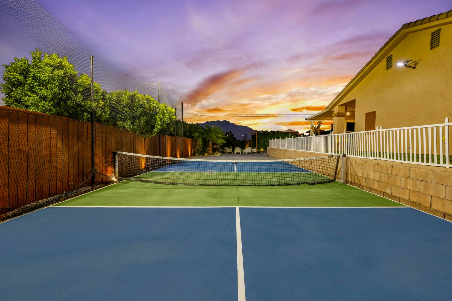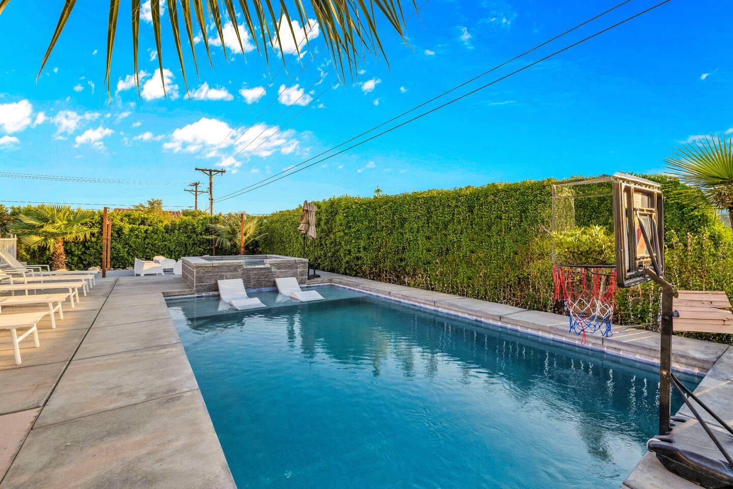 BACKYARD The new backyard includes a pool & spa, covered patio with an outdoor dining table, sofas, BBQ, hammock, firepit, basketball court, pickleball court, putting green, and other games. There are lots of activities to keep your party entertained all day and night. **PLEASE NOTE: The fee to heat the pool is $150/day. Please let us know at least 24 hours in advance of your arrival if you'd like the pool heated. Spa heating is complimentary. KITCHEN The kitchen is fully equipped with a standard ground coffee maker, tea kettle, toaster, blender, and everything you need to cook at home. Kitchen supplies included: coffee, sugar, tea, cooking oil, spices, and plenty of outdoor dinnerware. LIVING ROOM Enjoy an open-concept living room with a large comfortable couch to fit your party, a TV, and a sound bar to play your favorite music. BEDROOMS Please see details of each room below: 1 - 1 king bed, ensuite bathroom 2 - 1 king bed, ensuite bathroom, work-from-home desk 3 - 1 king bed 4 - 4 twin beds, ensuite bathroom + 2 twin folding beds BATHROOMS All three bathrooms include bath towels, hand towels, shampoo, conditioner, and body wash. Additional bath towels can be found under each bathroom sink. HOUSE RULES - No parties; violations will be notified to property manager and a $200 party clean up fee will be charged - Quiet hours start at 10:00 pm - 12 guests maximum - No glassware by the pool. We have provided ample outdoor drinkware, please use it! - We generally do not allow pets. Small dogs are ok for an additional $100 pet fee. Please reach out to hosts for approval - Turn off BBQ and Fire pit propane after each use - Lower umbrellas every day due to winds SECURITY CAMERAS For the safety of our property, we have outdoor security cameras facing the front driveway and front doorbell. These are live recordings and we do monitor. Please message us if you have any questions. This house is privately owned and managed; the owners assume no liability for any accidents, injuries or illness that occur while on the premises or its facilities. The homeowners are not responsible for the loss of personal belongings or valuables of the guest. It is agreed that all guests are expressly assuming the risk of any harm arising from their use of the premises. Guests should be aware that the pool and surrounding patios can be dangerous. Please note, while the house is cleaned regularly before and after each guest, this desert region is known for natural dust storms and strong winds from time to time. These winds may carry a lot of sand that may collect on outdoor furniture overnight. -Pet fee $150 for each entire stay -Pool heating is available for $150 per day.Plaese request at least 24 hours in advance. STR#: RVC-1573