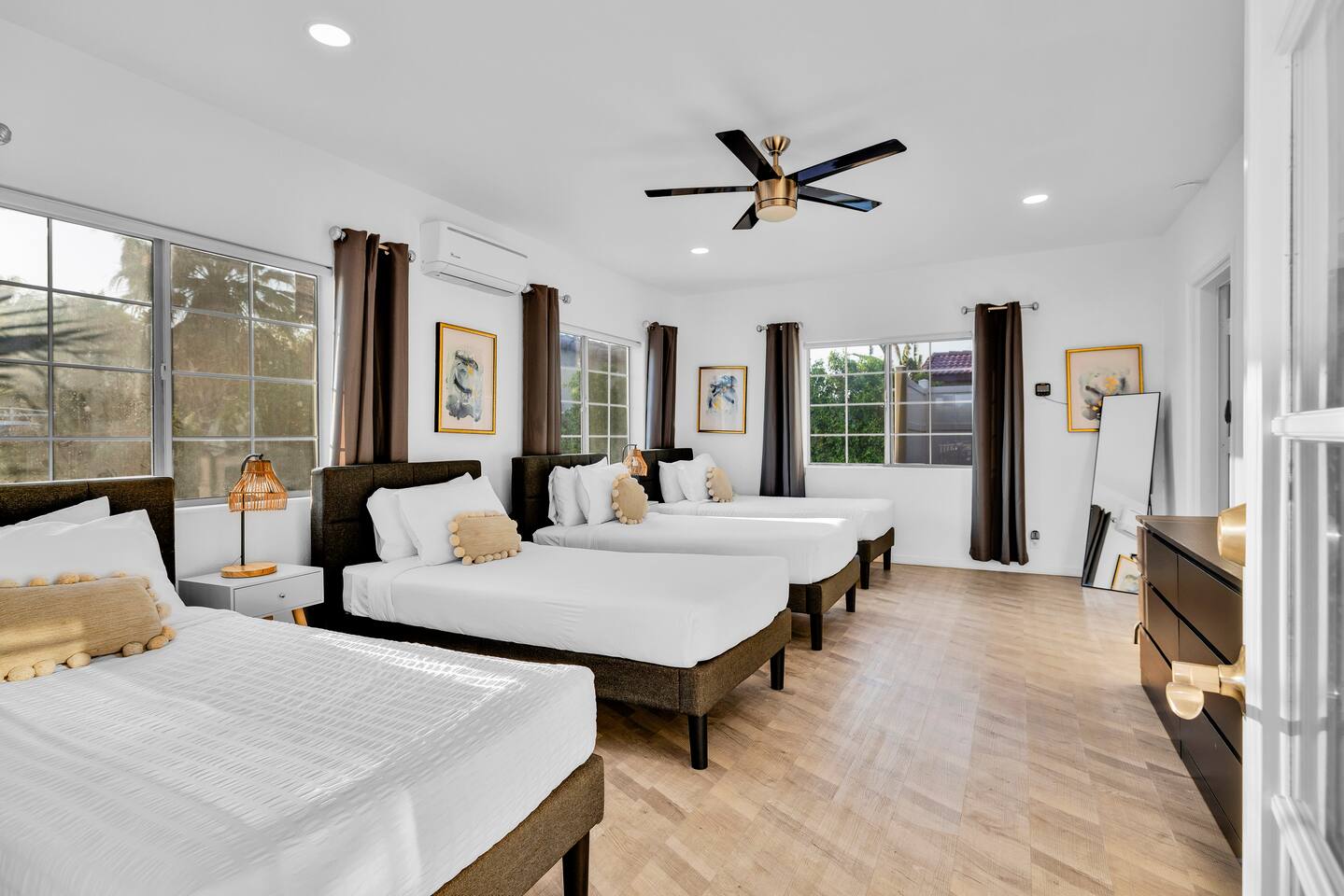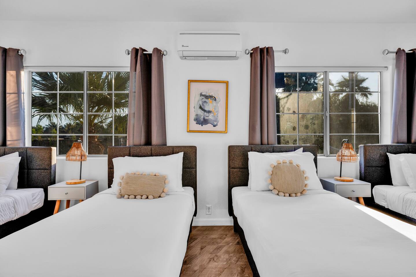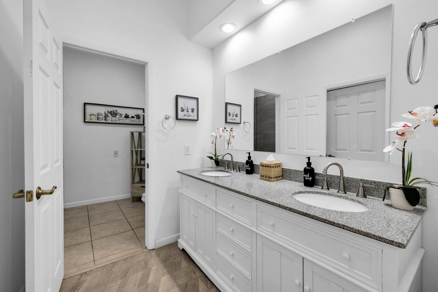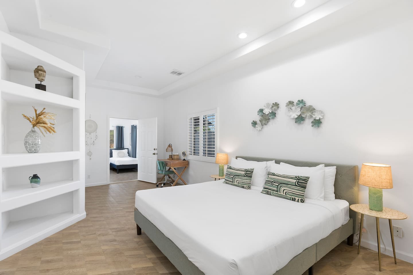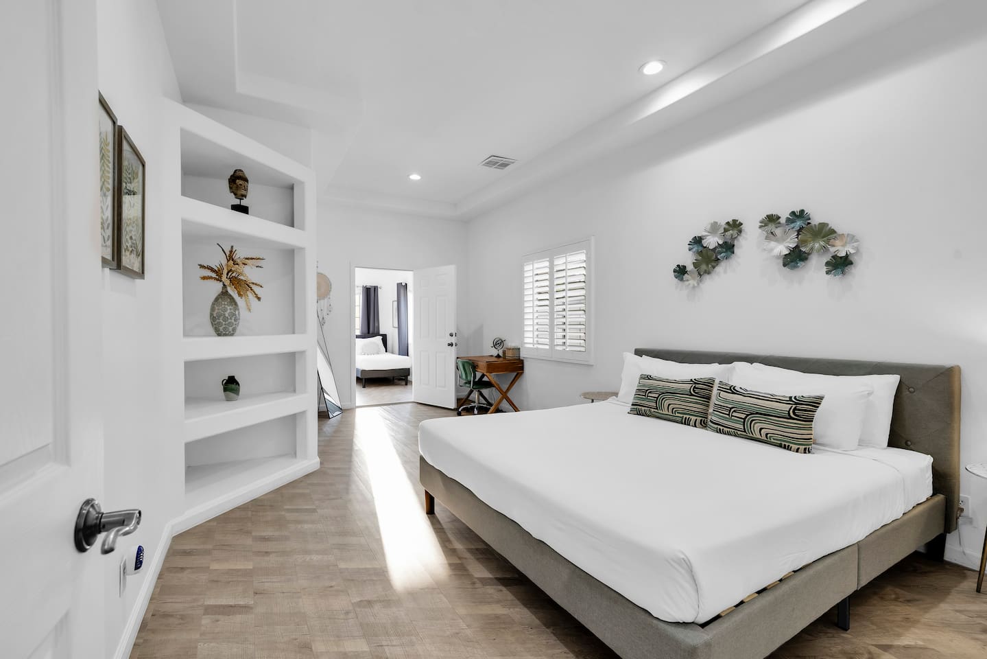 BACKYARD The new backyard includes a pool & spa, covered patio with an outdoor dining table, sofas, BBQ, hammock, firepit, basketball court, pickleball court, putting green, and other games. There are lots of activities to keep your party entertained all day and night. **PLEASE NOTE: The fee to heat the pool is $150/day. Please let us know at least 24 hours in advance of your arrival if you'd like the pool heated. Spa heating is complimentary. KITCHEN The kitchen is fully equipped with a standard ground coffee maker, tea kettle, toaster, blender, and everything you need to cook at home. Kitchen supplies included: coffee, sugar, tea, cooking oil, spices, and plenty of outdoor dinnerware. LIVING ROOM Enjoy an open-concept living room with a large comfortable couch to fit your party, a TV, and a sound bar to play your favorite music. BEDROOMS Please see details of each room below: 1 - 1 king bed, ensuite bathroom 2 - 1 king bed, ensuite bathroom, work-from-home desk 3 - 1 king bed 4 - 4 twin beds, ensuite bathroom + 2 twin folding beds BATHROOMS All three bathrooms include bath towels, hand towels, shampoo, conditioner, and body wash. Additional bath towels can be found under each bathroom sink. HOUSE RULES - No parties; violations will be notified to property manager and a $200 party clean up fee will be charged - Quiet hours start at 10:00 pm - 12 guests maximum - No glassware by the pool. We have provided ample outdoor drinkware, please use it! - We generally do not allow pets. Small dogs are ok for an additional $100 pet fee. Please reach out to hosts for approval - Turn off BBQ and Fire pit propane after each use - Lower umbrellas every day due to winds SECURITY CAMERAS For the safety of our property, we have outdoor security cameras facing the front driveway and front doorbell. These are live recordings and we do monitor. Please message us if you have any questions. This house is privately owned and managed; the owners assume no liability for any accidents, injuries or illness that occur while on the premises or its facilities. The homeowners are not responsible for the loss of personal belongings or valuables of the guest. It is agreed that all guests are expressly assuming the risk of any harm arising from their use of the premises. Guests should be aware that the pool and surrounding patios can be dangerous. Please note, while the house is cleaned regularly before and after each guest, this desert region is known for natural dust storms and strong winds from time to time. These winds may carry a lot of sand that may collect on outdoor furniture overnight. -Pet fee $150 for each entire stay -Pool heating is available for $150 per day.Plaese request at least 24 hours in advance. STR#: RVC-1573